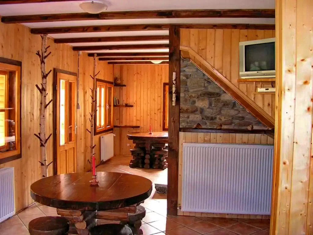 - Tágas, kandallóval felszerelt nappalival rendelkezik. Hűvös napokon a kőből épült kandalló tüze meghitt hangulatot és kellemes hőmérsékletet biztosit az ebédlőben. A kandallóban található fa egy alkalomra ingyenes. A meleget fa tüzelésesű kazánnal, központi fűtéssel biztositja.