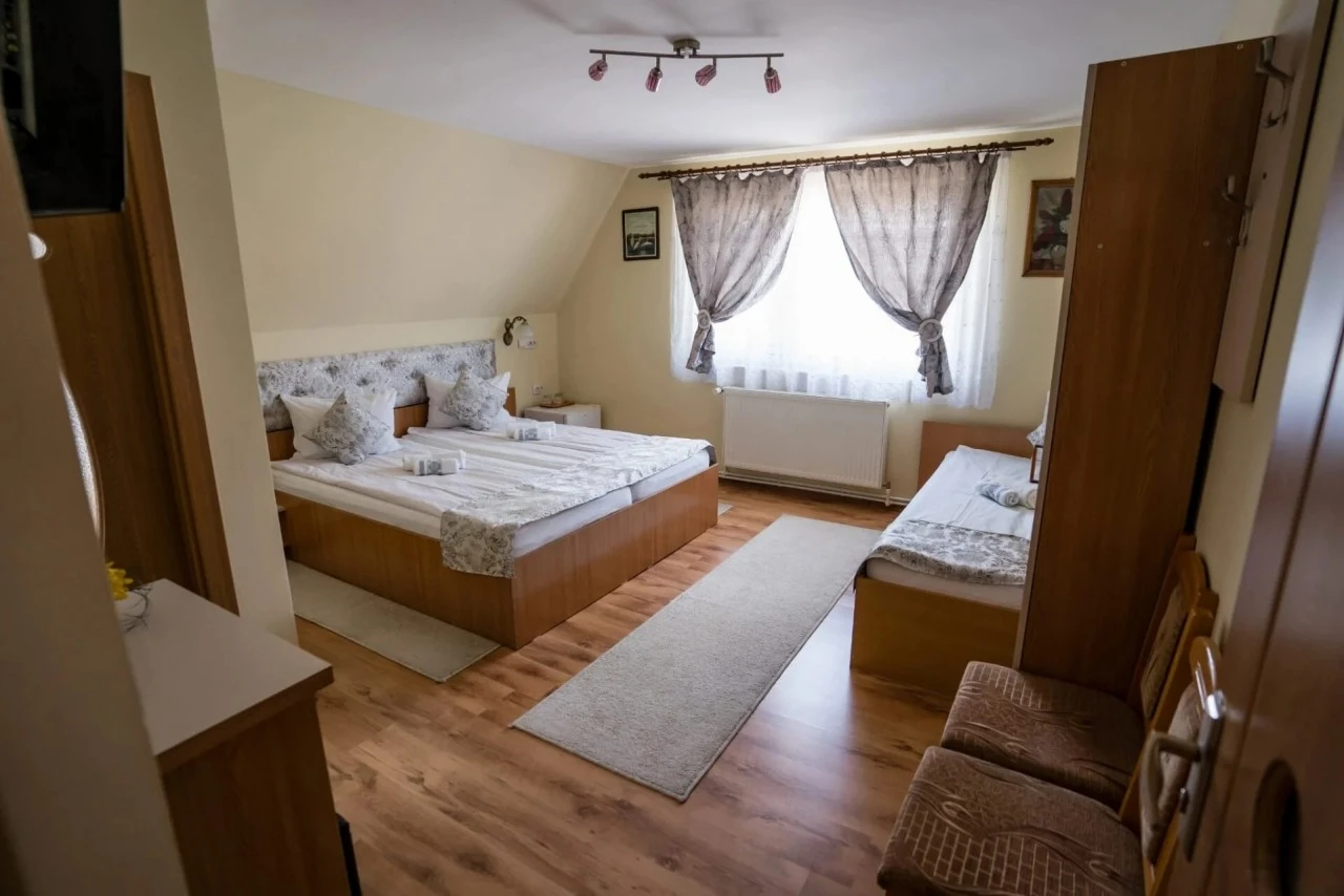 • 1 háromágyas szoba (3 egyszemélyes ágy, saját fürdőszoba)