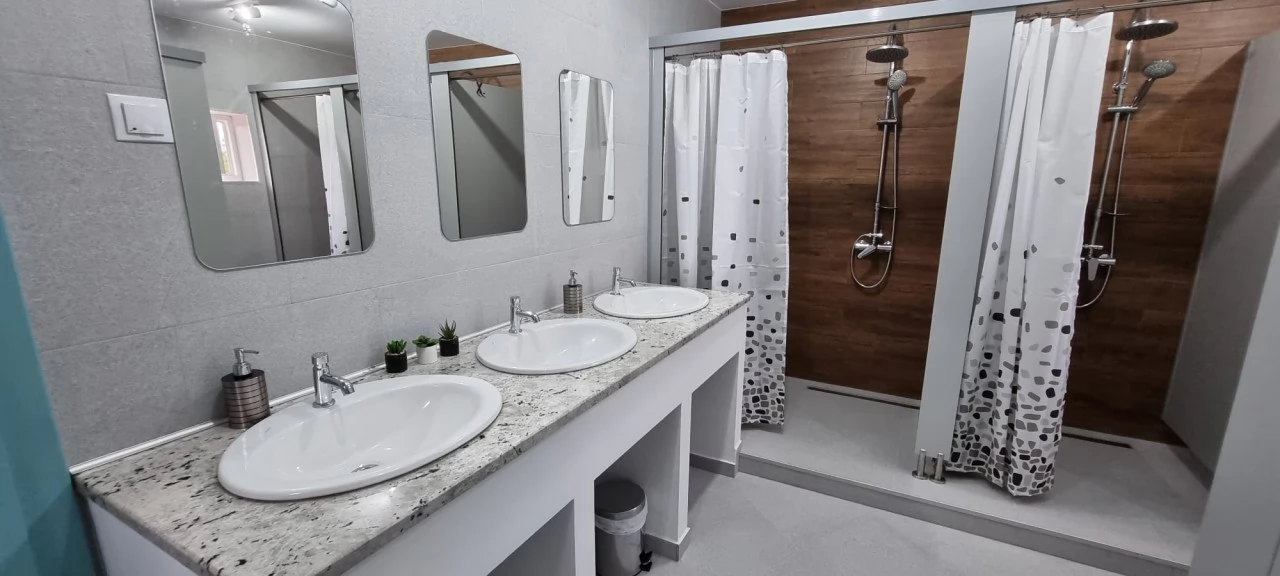 - 6 szoba, 2 közös fürdőszoba (egy férfiaknak és egy nőknek), mindegyik fürdőszobában 3 mosdó, 3 WC és 3 zuhanyzó található.