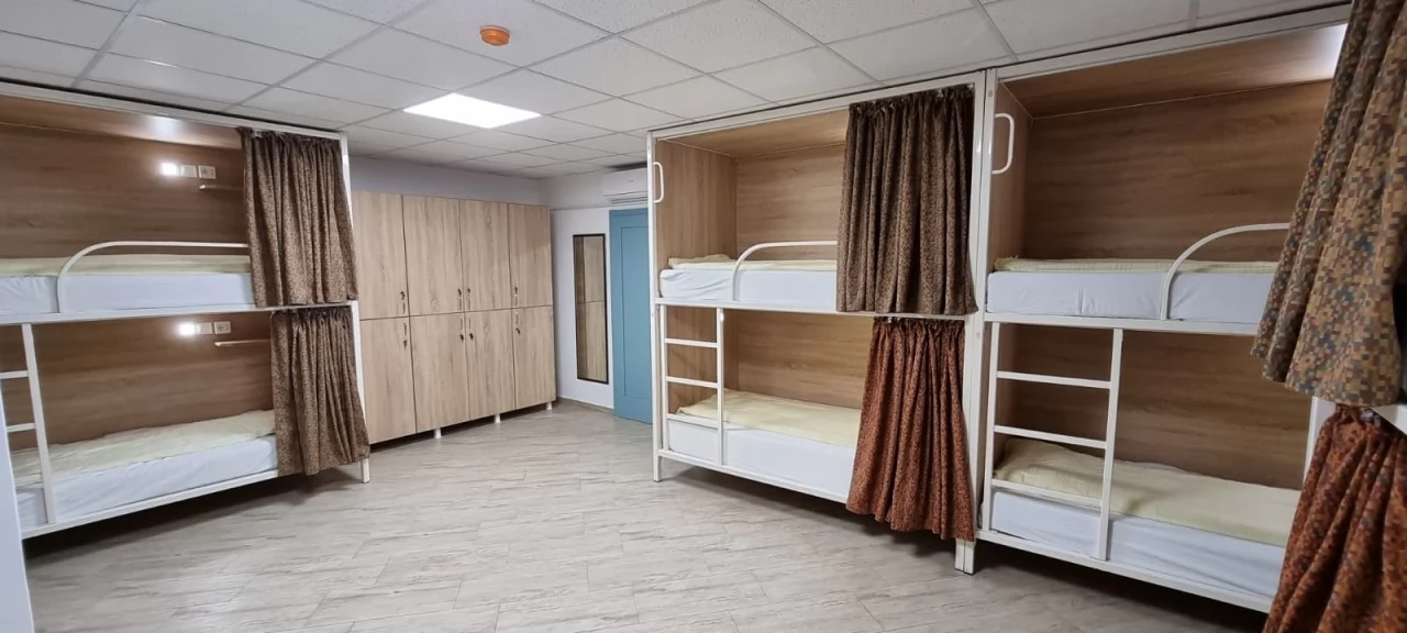 Kényelmes, emeletes ágyakkal felszerelt vegyes hálószoba 8 fő részére 100/200 cm-es ágyakkal. Minden ágyhoz saját olvasólámpa, konnektor, függöny, ingyenes ágynemű és tágas zárható szekrény tartozik, légkondicionálóval, 28 nm-es területtel.