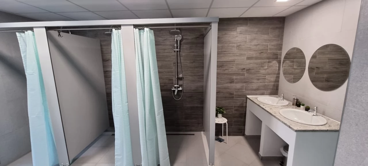 - Külön férfi és női közös fürdőszobák meleg vízzel, wc-kkel és zuhanyokkal.