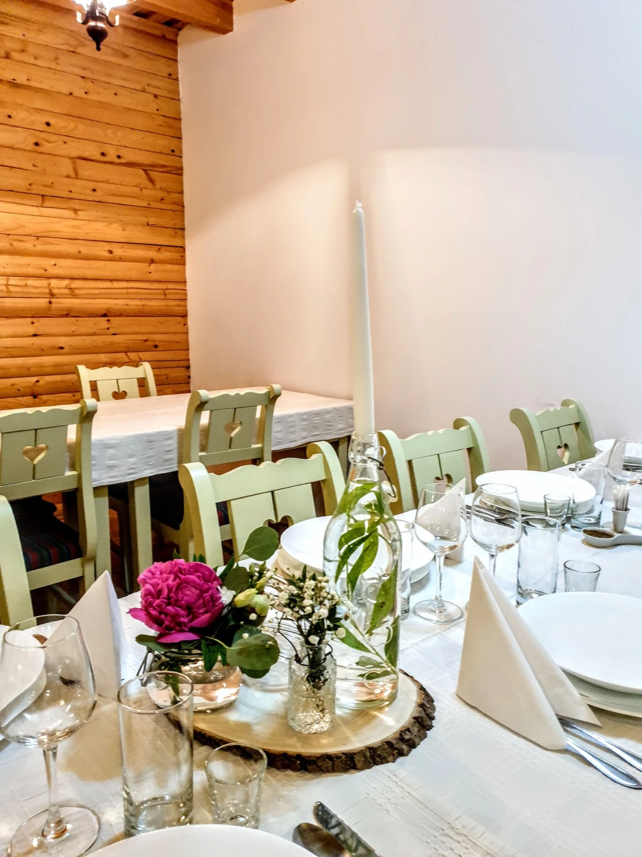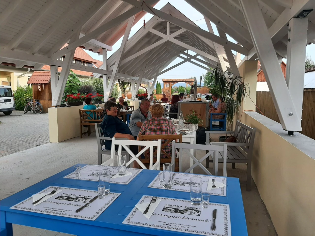 - Az épület földszintjén található egy tágas, 40 férőhelyes étterem, amely hagyományos székely stílusban, fa- és varrottas dekorációkkal van berendezve.