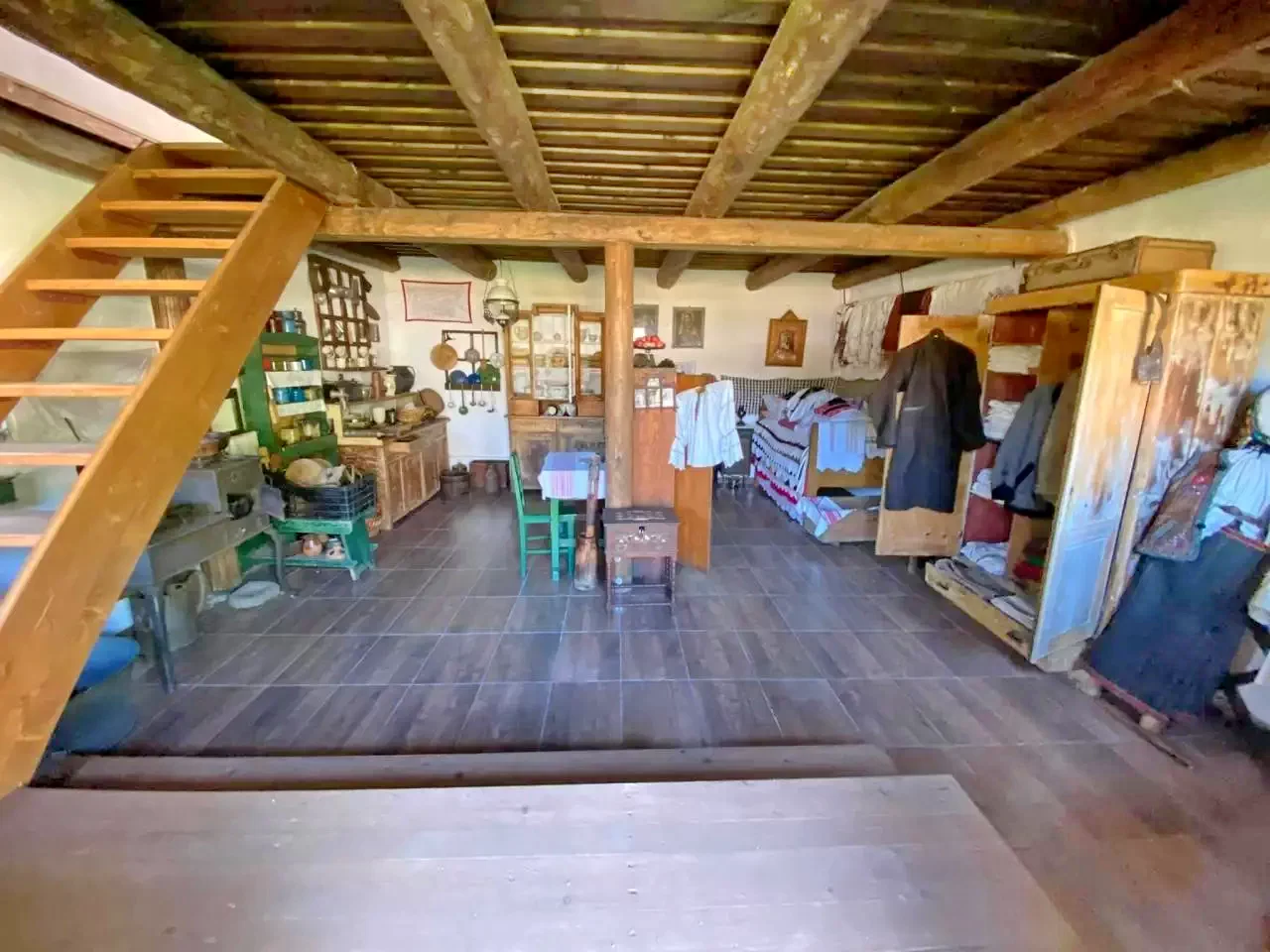 Egyedüli, nem a csángóvidékről származó házunk. Két bejáratú háromszobás parasztház amely Csíkmadarasról volt hozva, és saját fürdőszobával rendelkezik.