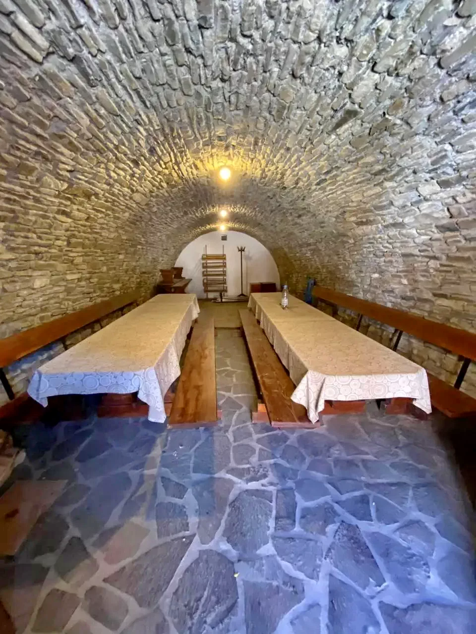 alagsorban 6 fő részére van kialakítva egy nagy szoba. Szintén az alagsorban találhatók wc-k, tusolók a dombon levő házak lakóinak