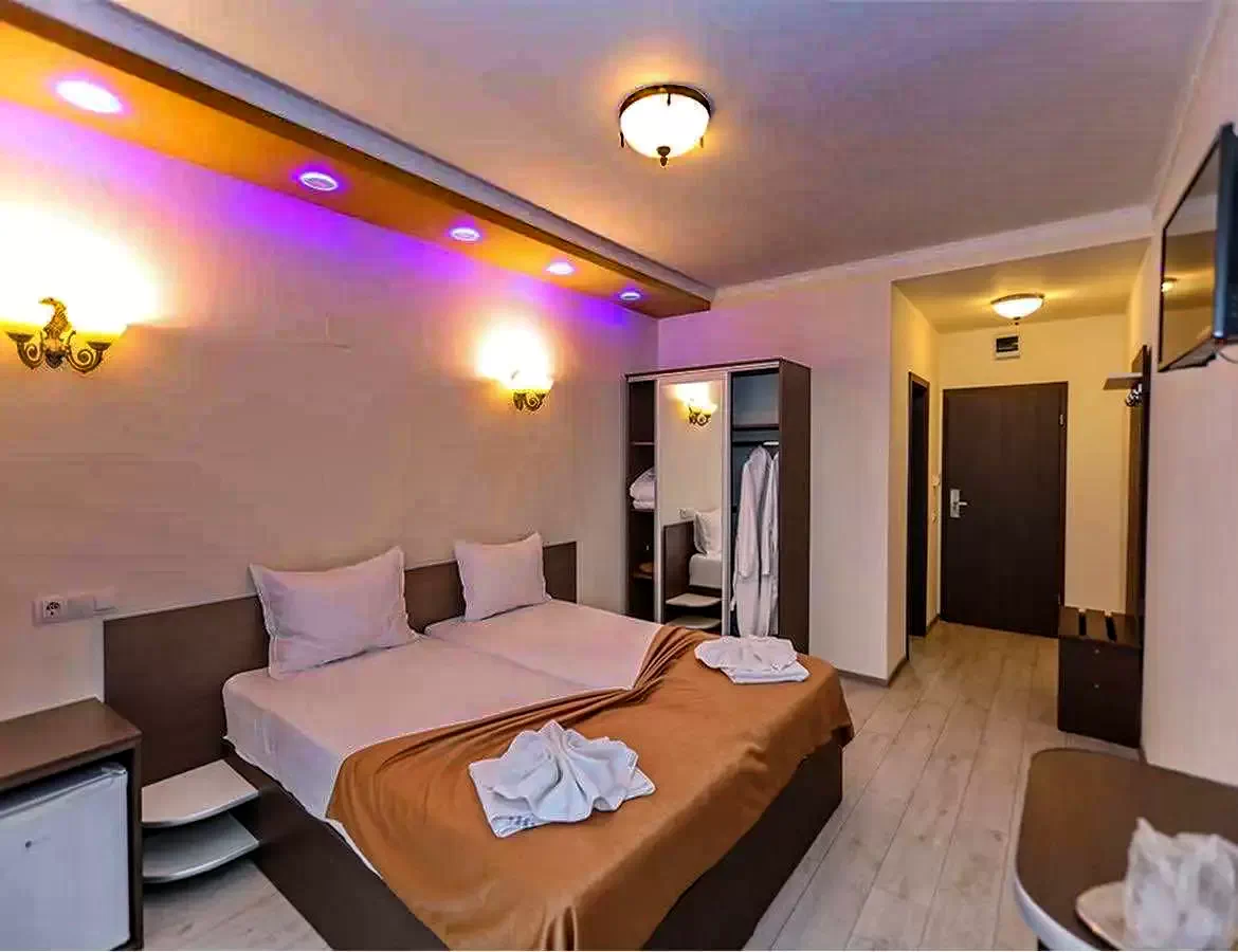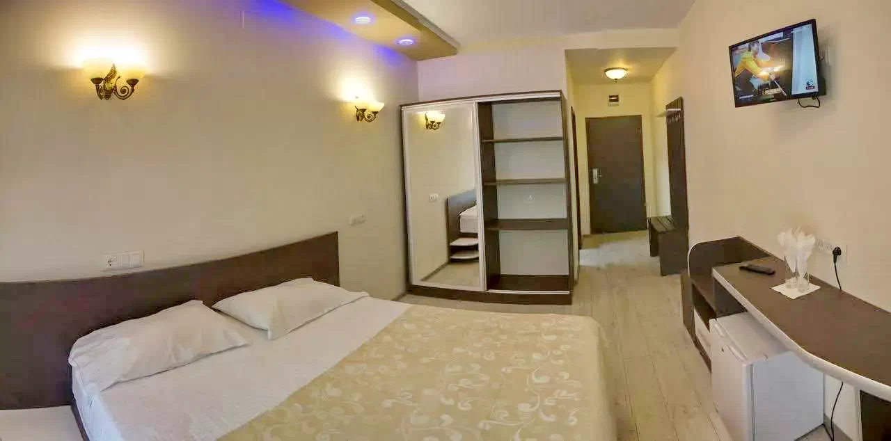 - A szobák saját fürdőszobával, színes TV -vel, hűtőszekrénnyel és központi fűtéssel rendelkeznek. Minden szobában ingyenes vezeték nélküli internet hozzáférés és kábel -TV áll rendelkezésre.
