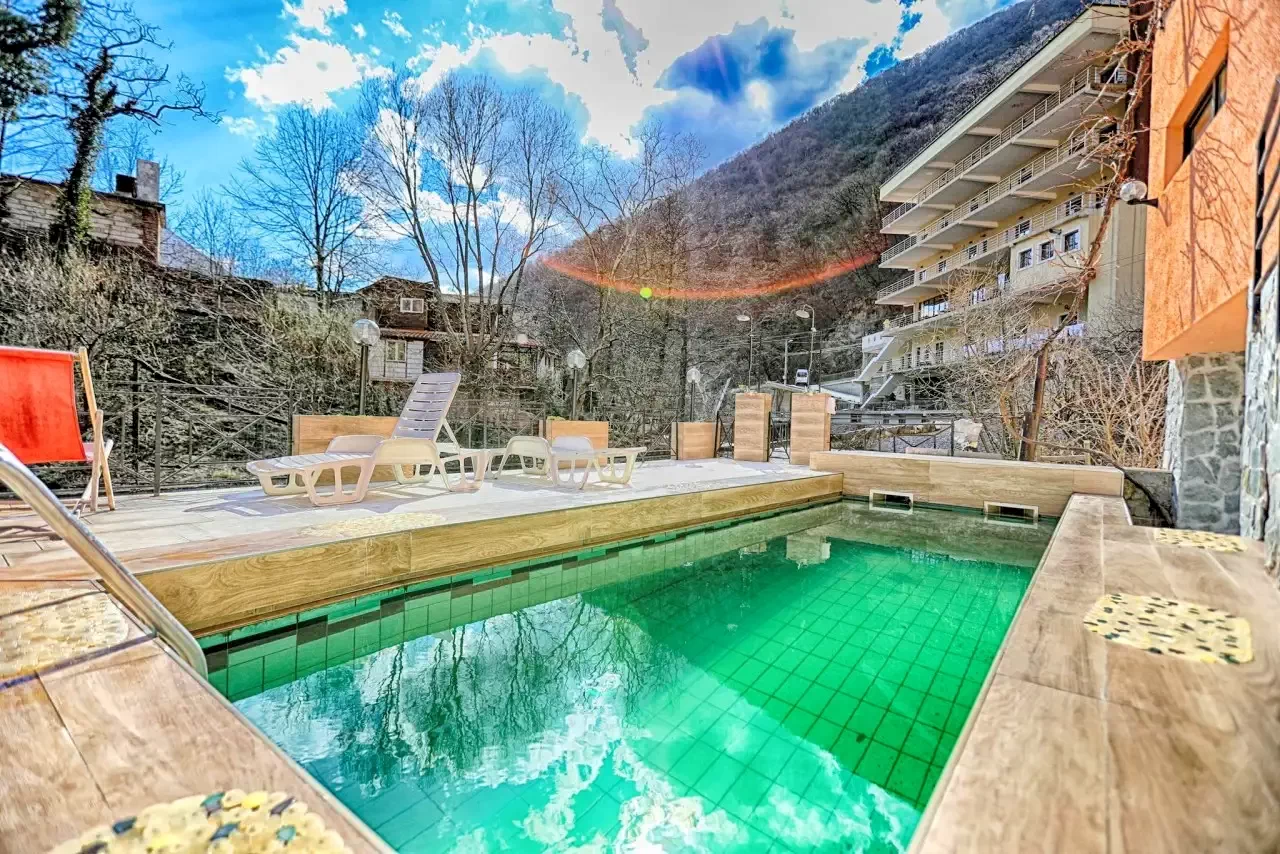 - A hotel éttermet, teraszt, termálvizes úszómedencét és szaunát kínál a turistáknak. A szabadtéri medencéje a belső udvaron fekszik, és kénes termálvízét a környék termálforrásaiból meríti.