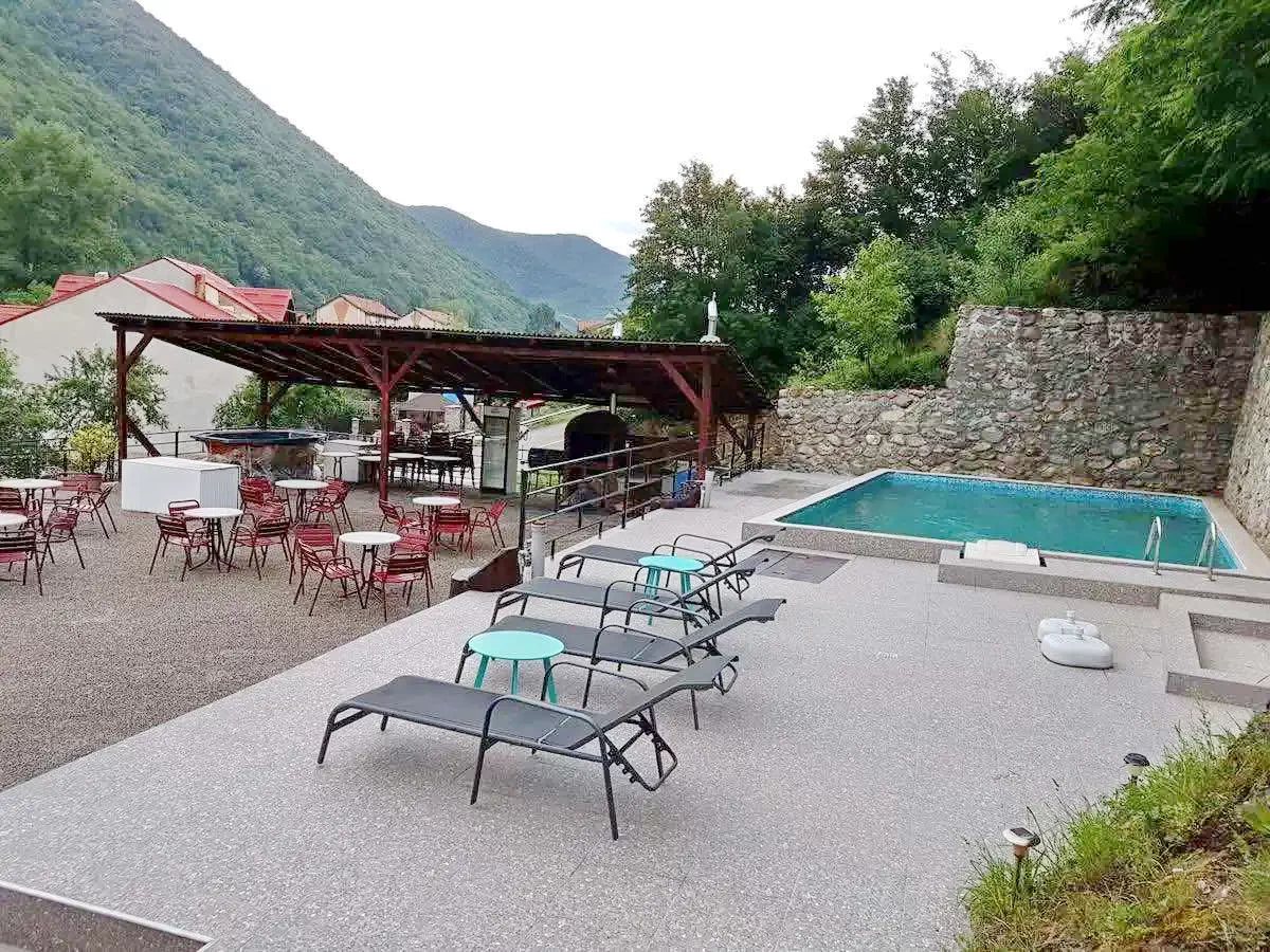 - Élvezze a hagyományos erdélyi ízeket a 40 férőhelyes étteremben, vagy grillezőpartit a 100 férőhelyes teraszon, miközben a Cserna-völgy lenyűgöző panorámájában gyönyörködik.