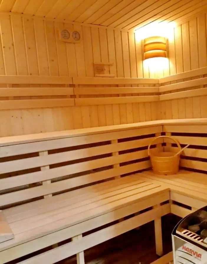 - A földszinten tágas nappali, teljesen felszerelt konyha, különálló WC, zuhanyzós fürdőszoba és egy relaxáló szauna található.