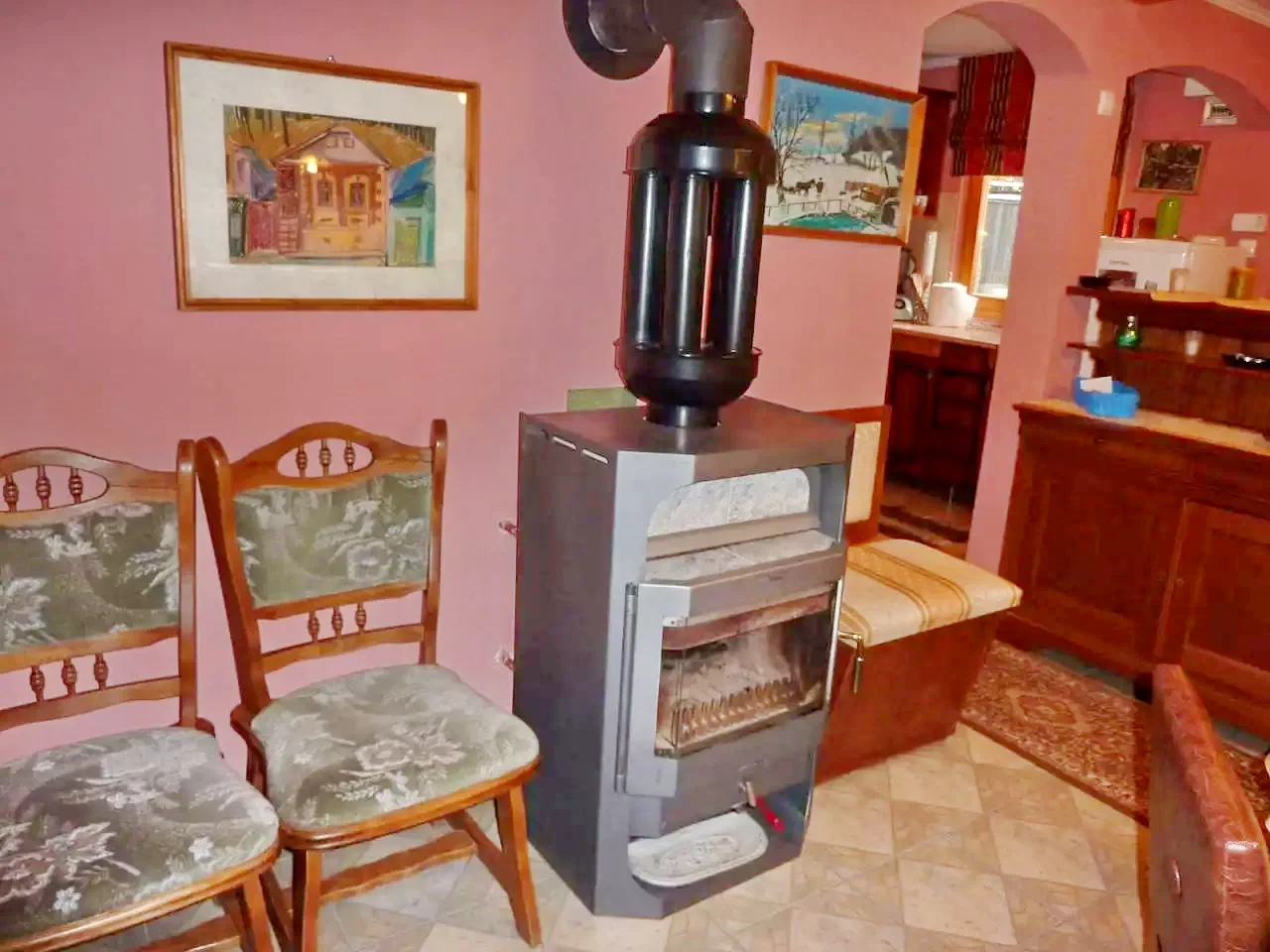 - A ház fűtését kandalló és központi fűtés biztosítja, a meleg víz pedig elektromos bojlerről és fatüzelésű kazánról áll rendelkezésre, garantálva a komfortot télen-nyáron.