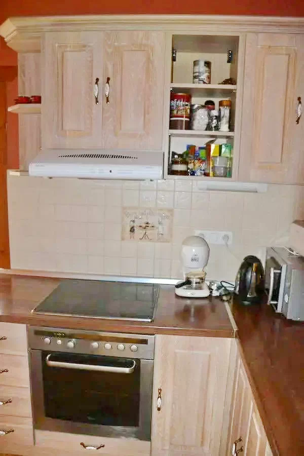 - A kulcsosházban egy modern, teljesen felszerelt konyha várja a vendégeket, elektromos sütővel, főzőlappal, mikrohullámú sütővel, hűtőszekrénnyel, kenyérpirítóval, kávéfőzővel, valamint edényekkel, evőeszközökkel és poharakkal.
