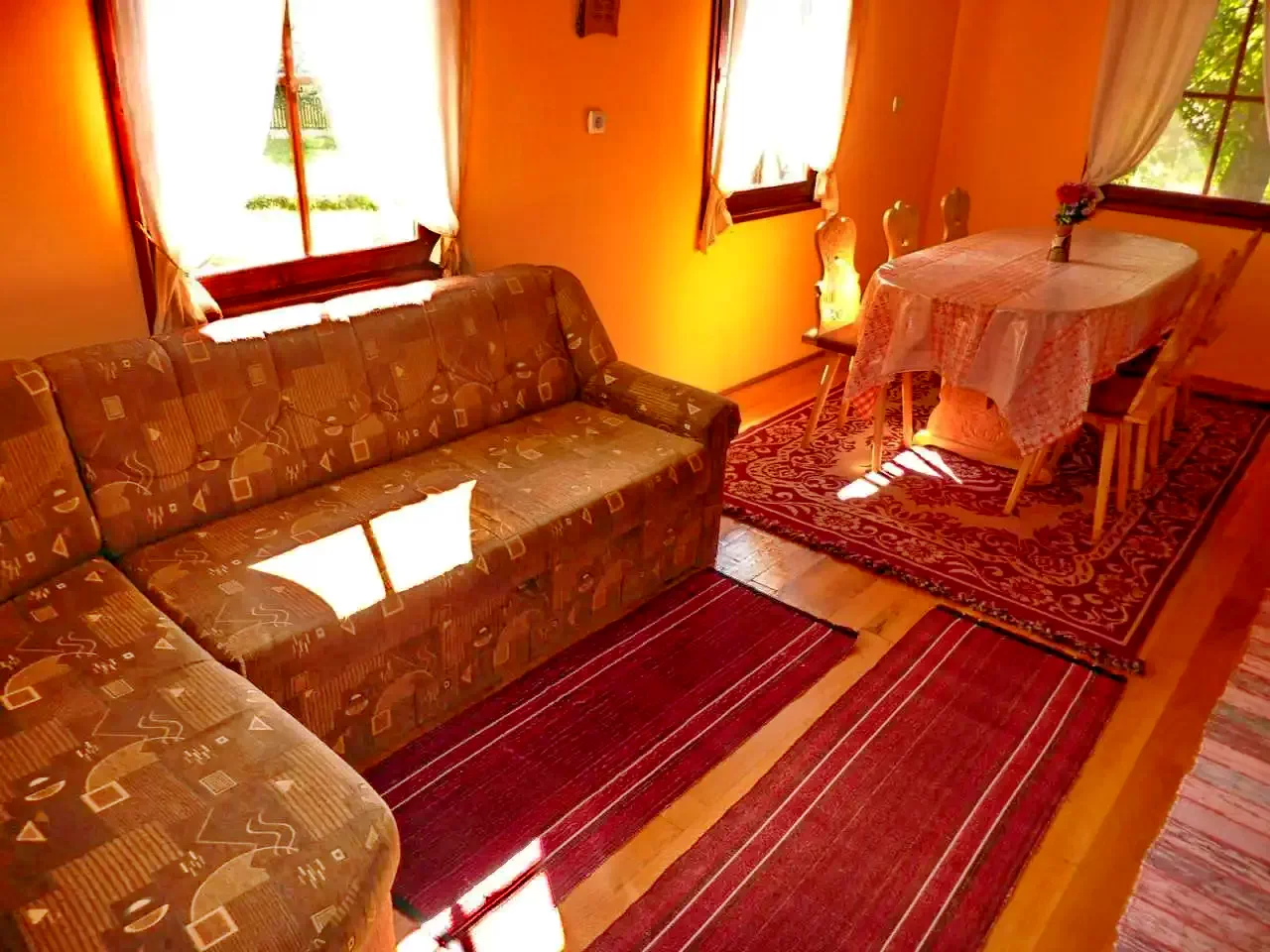 - Az emeleten három szoba, mindegyik két egyszemélyes ággyal, biztosít nyugodt pihenést.