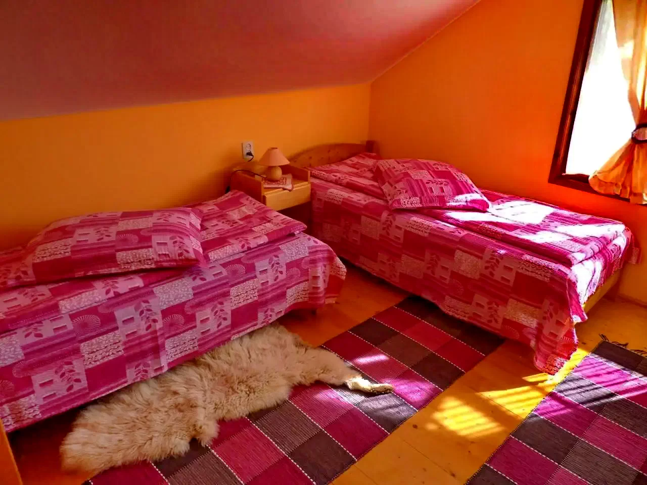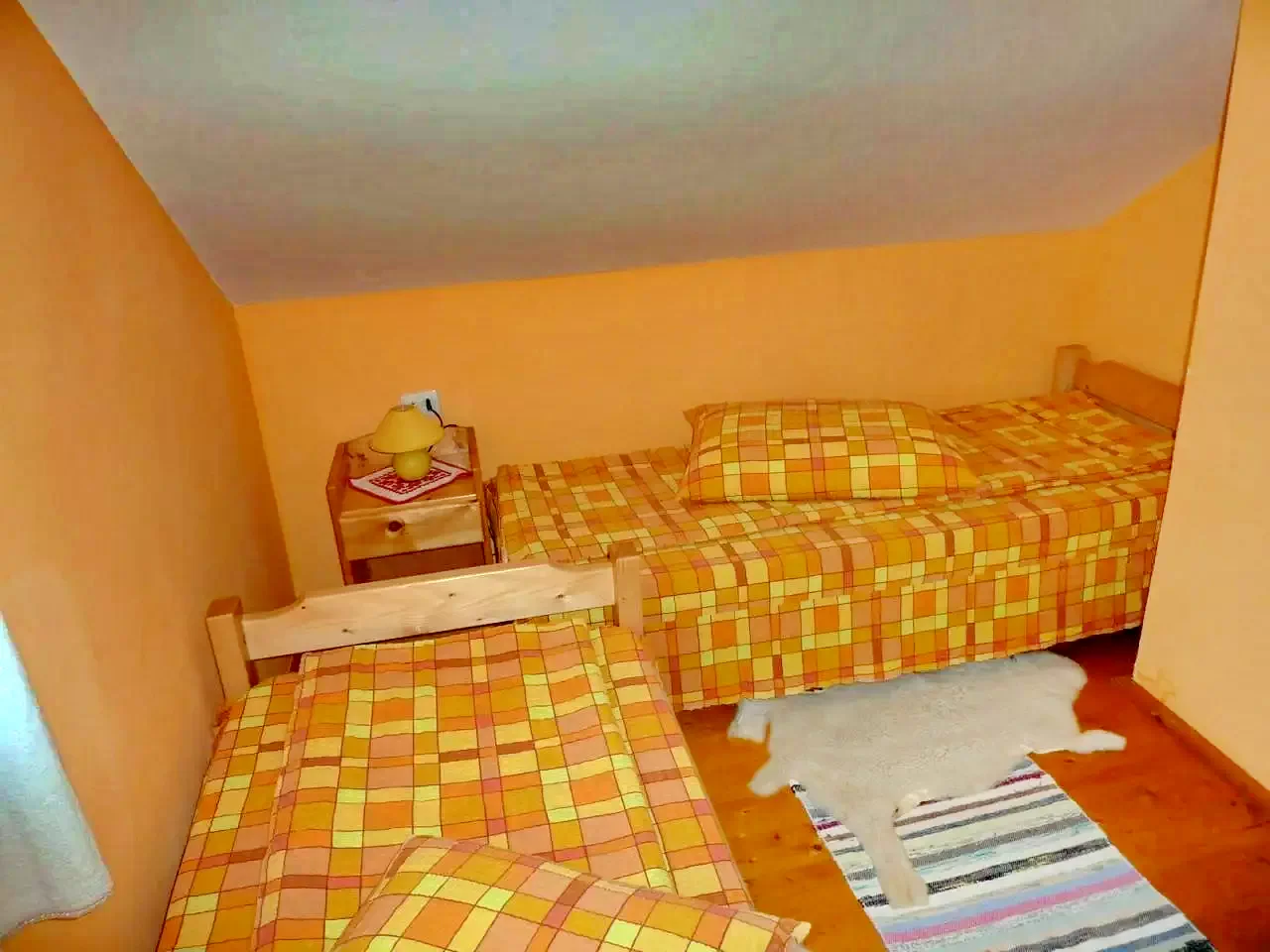 Emelet: 3 szoba, mindegyik 2 egyszemélyes ággyal.