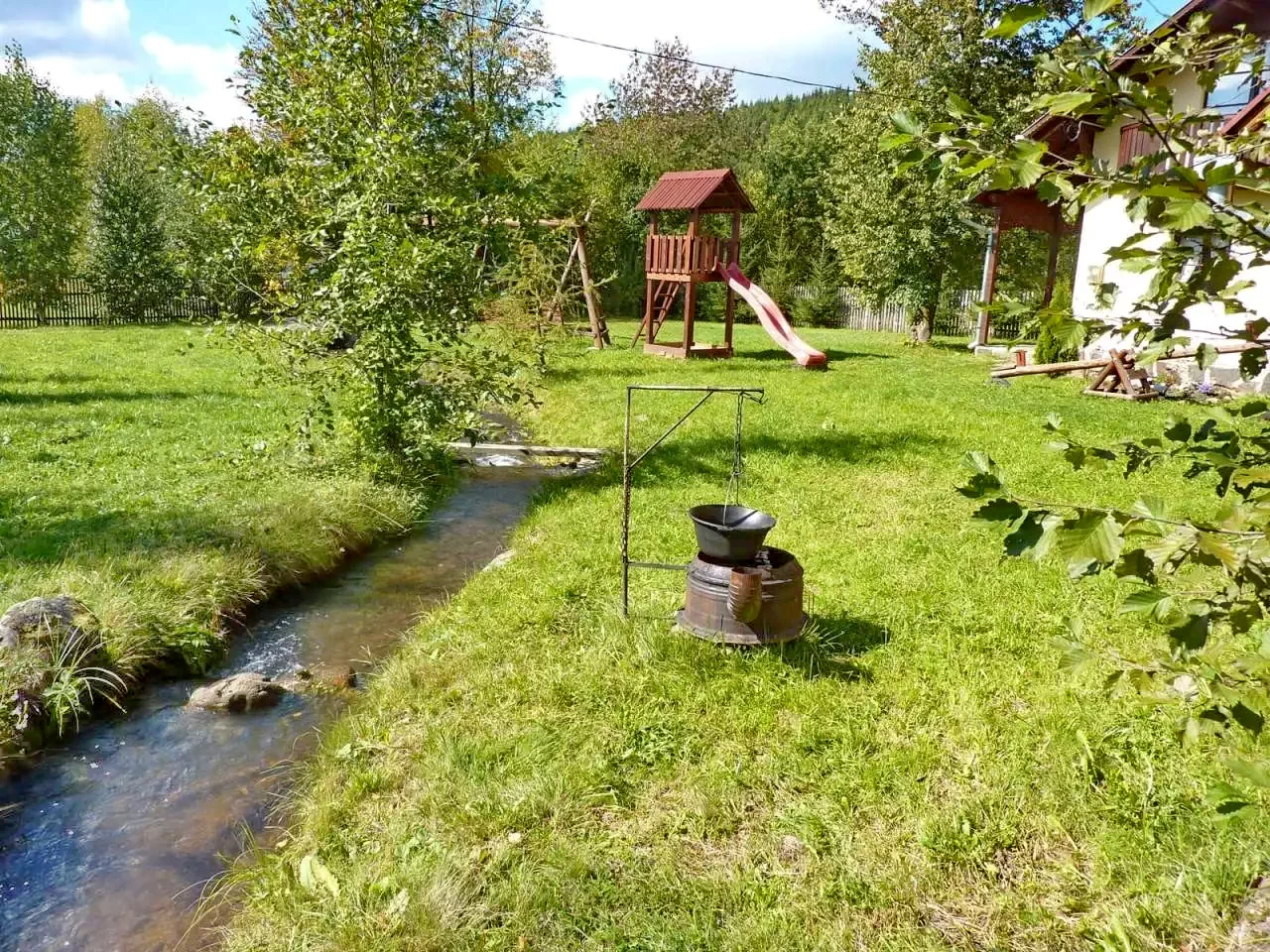 - Az 1200 m²-es udvaron fedett söröző, kerti kiülő, flekkensütő kemence, bogrács, tárcsalap, szabad tűzhely, napozóágy, hinta, lipinka, csúszda és homokozó biztosít változatos programokat minden korosztálynak.