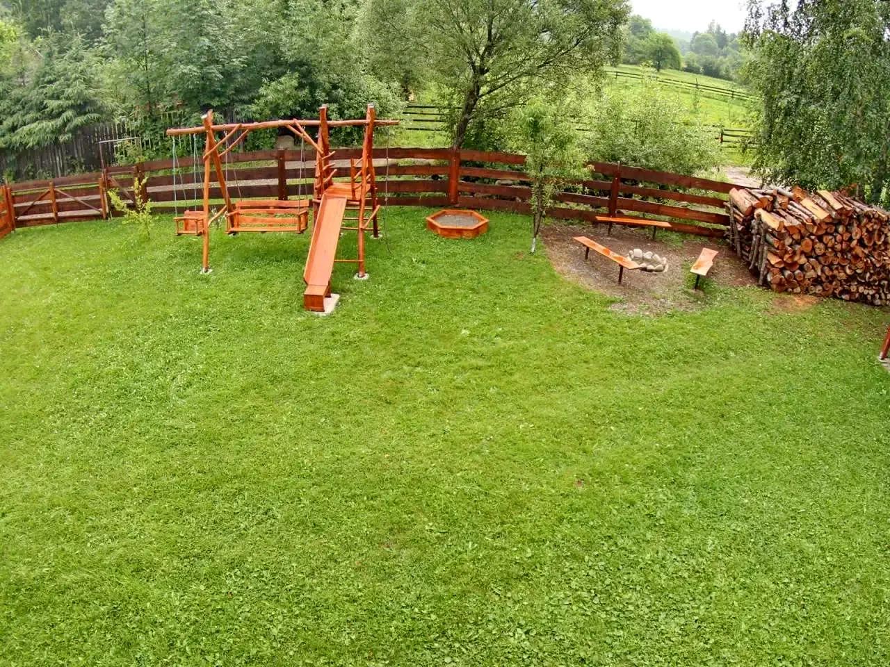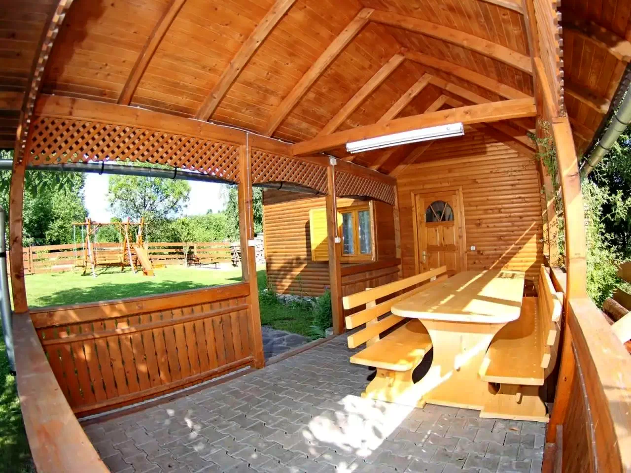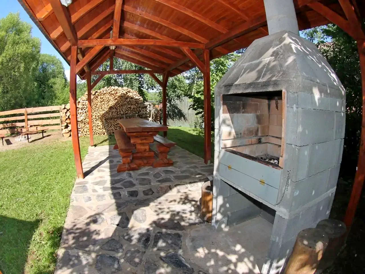 - Az 500 m²-es udvaron fedett söröző, kerti kiülő, flekkensütő kemence, bogrács, tárcsalap, szabad tűzhely, hinta, csúszda, homokozó és pingpongasztal biztosít kikapcsolódást minden korosztály számára.
