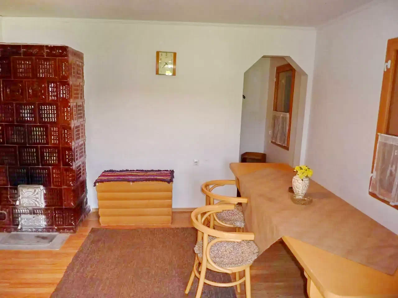 A ház cserépkályhával fűthető, elektromos melegvíz-ellátással, így télen is otthonos kényelmet nyújt.