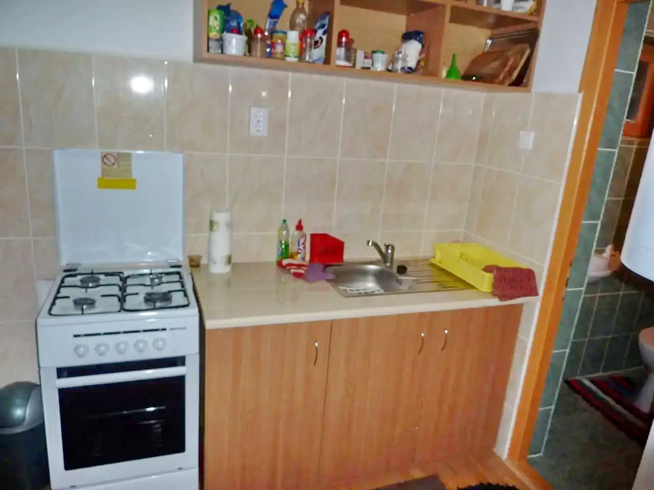 Fürdőszoba: 1 fürdőszoba zuhanyzóval, vízöblítős WC-vel és mosdóval, a konyhán keresztül elérhető.
