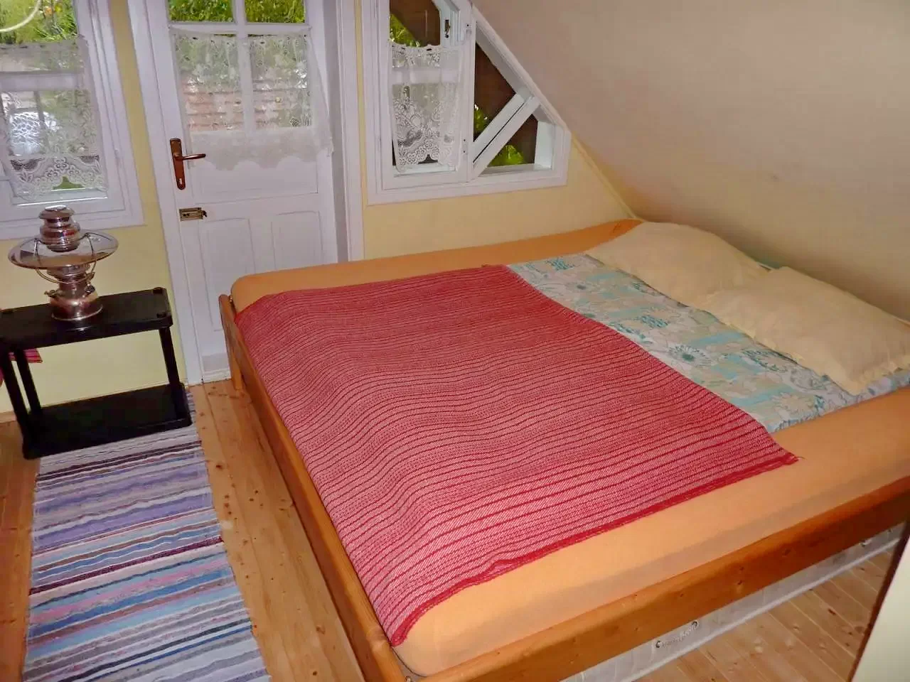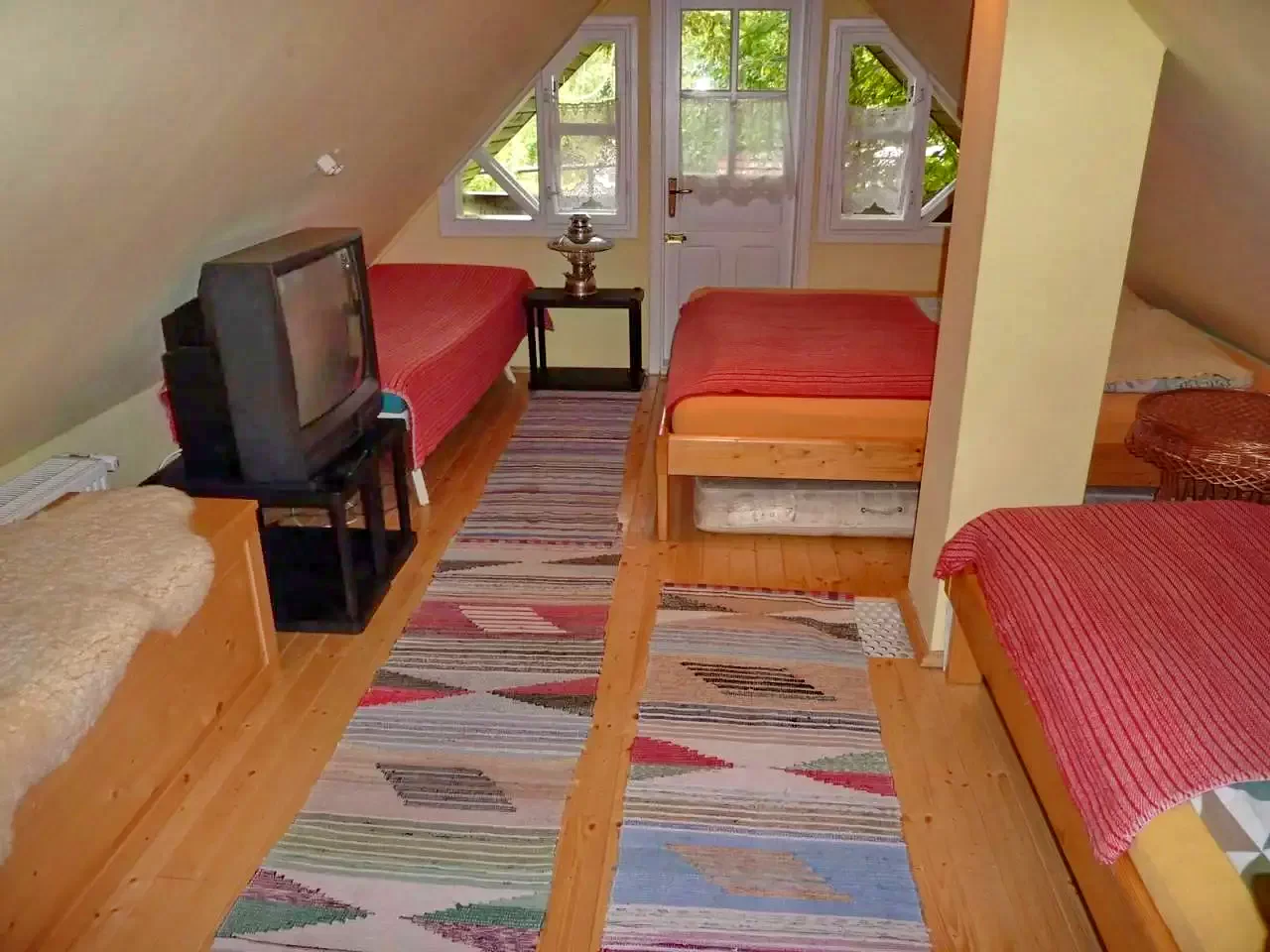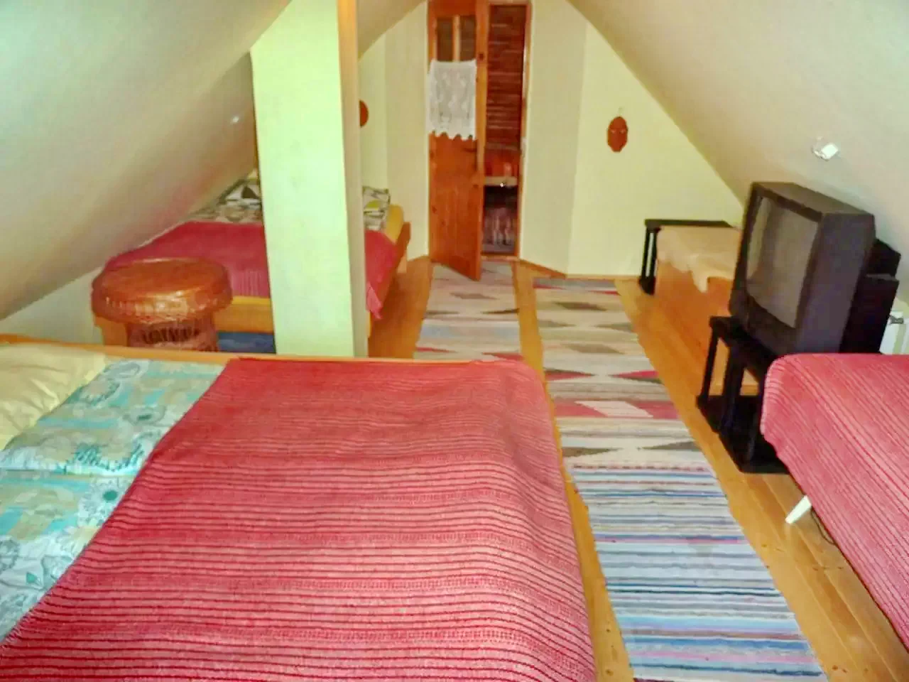 - Emelet: két szoba (1 db kétszemélyes ágy pótágyazási lehetőséggel; 2 db kétszemélyes ágy).
