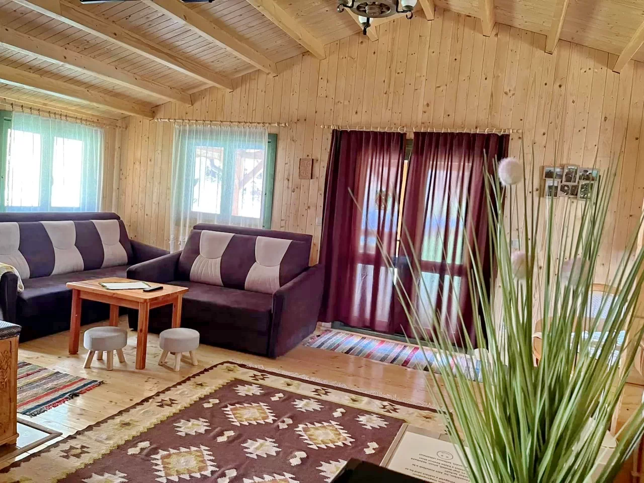 - Nappali (kandalló, TV, parabola antenna, 2 lehúzható kanapé)