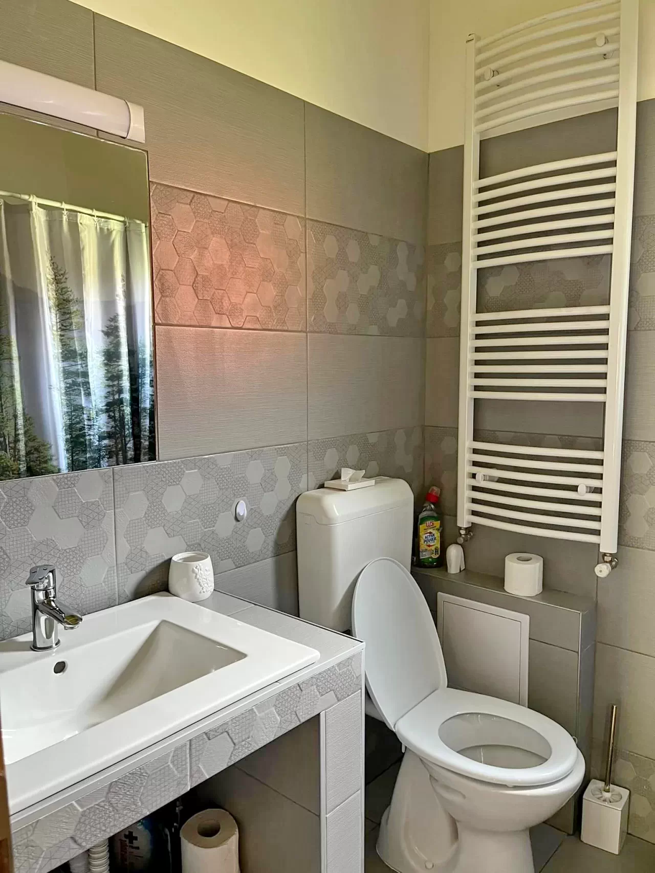 - A nappaliban található elegáns vízköpenyes kandalló fűtött időszakban a meleg vizet és a fűtést biztosítja. Nyárion a meleg víz szolgáltatása villanybojlerrel történik.