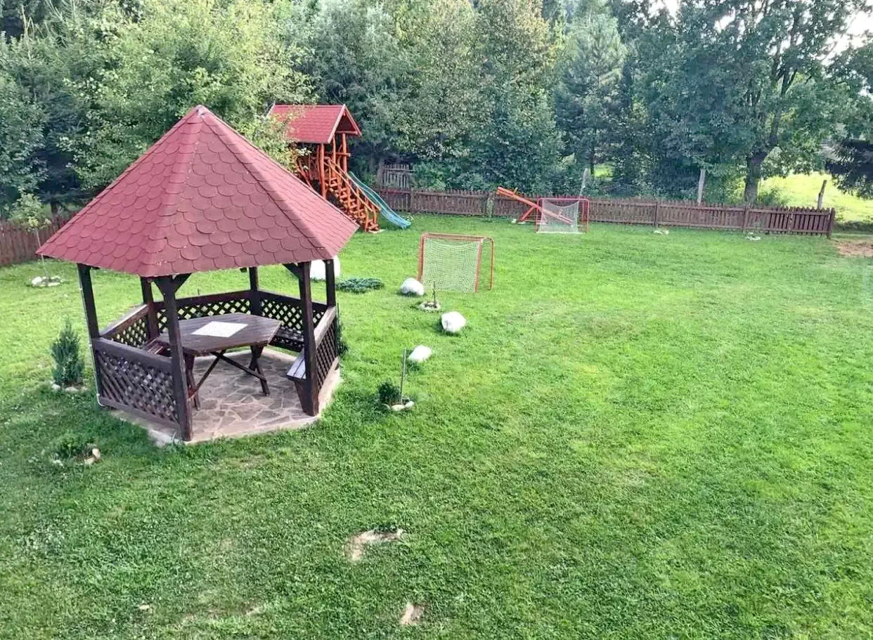 - Az 1000 m²-es udvar igazi játszótér a gyerekeknek: hinta, lipinka, csúszda, homokozó és focipálya garantálja a szórakozást.