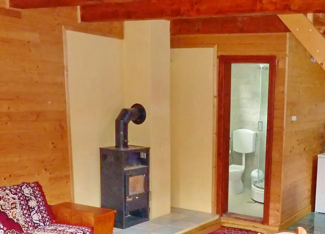 Fűtés: Öntvénykályha és elektromos fűtés, meghitt hangulattal.