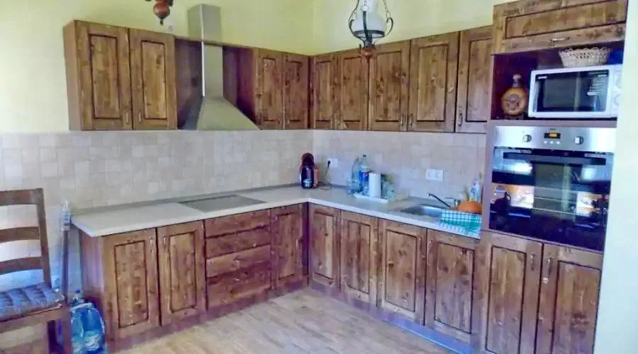 - A konyha minden szükséges eszközzel felszerelt: nagyméretű hűtőszekrény, sütő és elektromos főzőlap, mikrohullámú sütő, kávéfőző, kenyérpirító, vízforraló, mixer, valamint evőeszközök, tányérszettek és edények 14 fő részére.