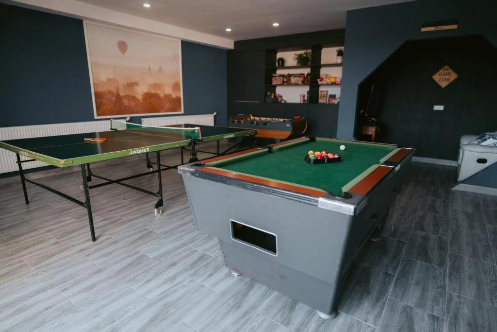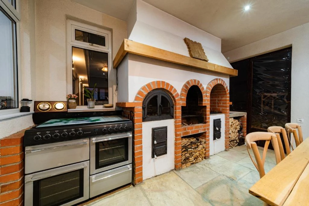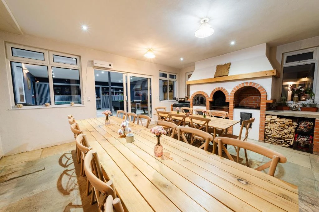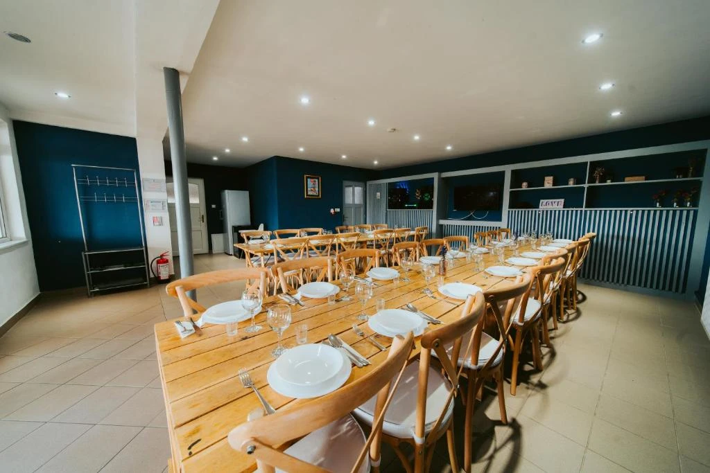 A közös étkezések a nagy, tágas nappali-étkező térben könnyen megszervezhetők baráti társaságok vagy csoportok számára.