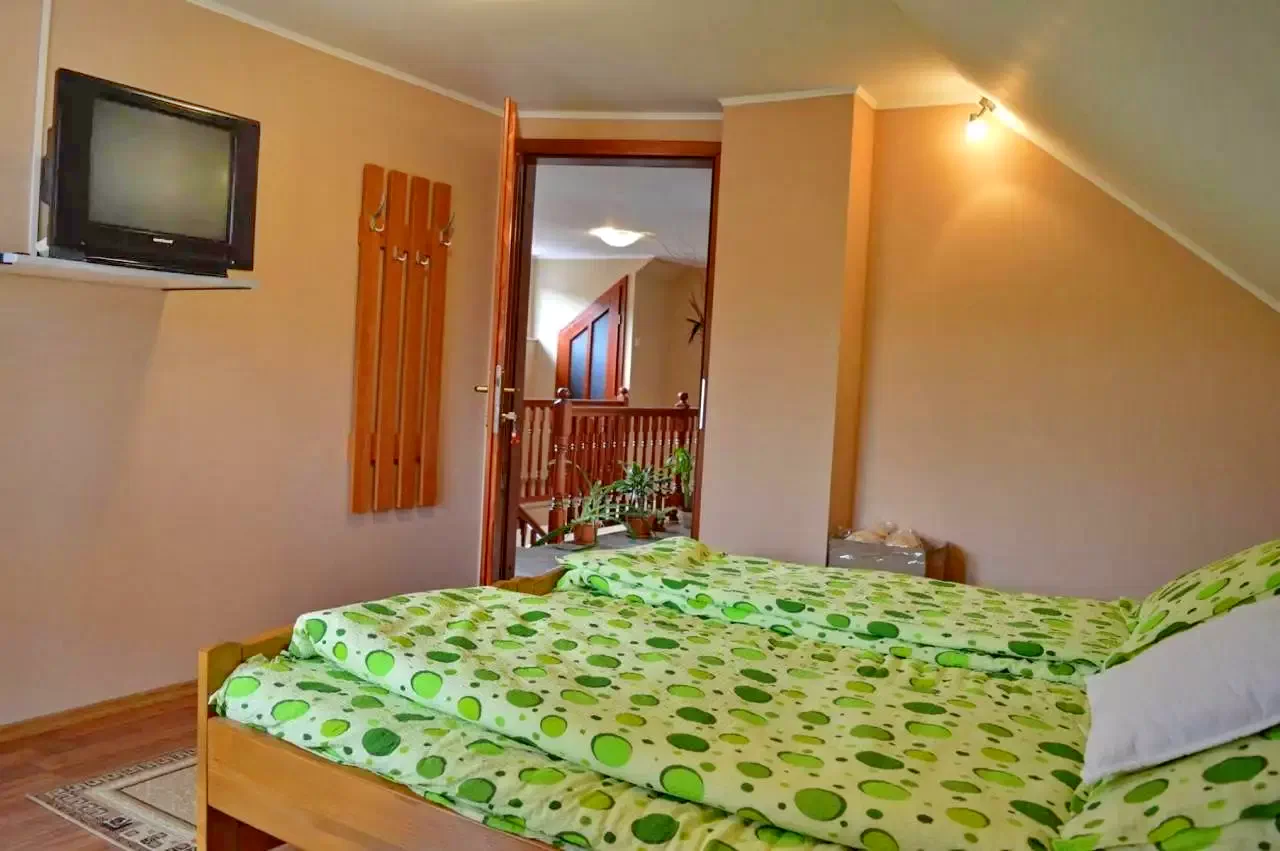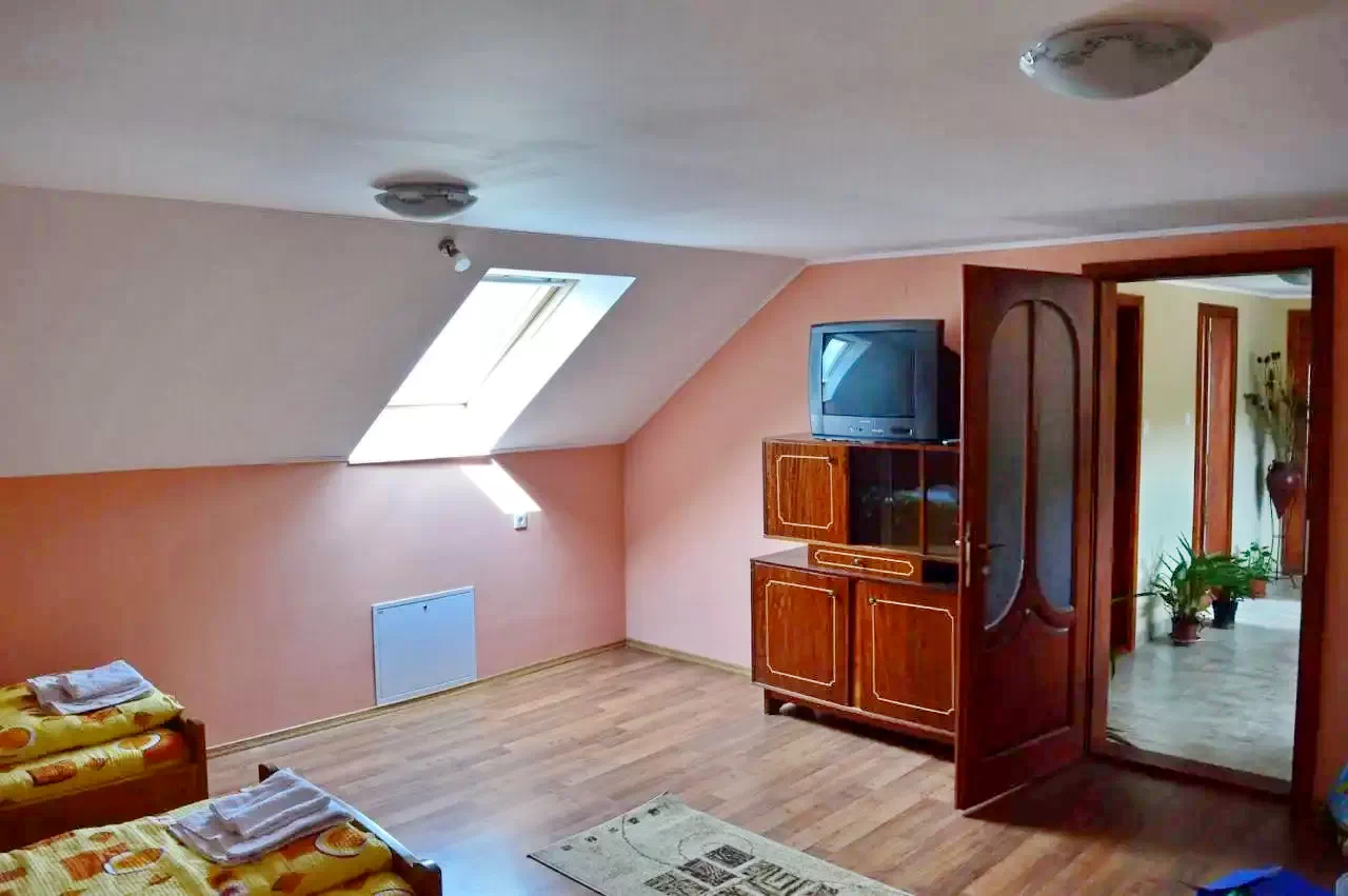 - 8. szoba: tágas szoba, benne 1 franciaágy, 2 db egyszemélyes ágy