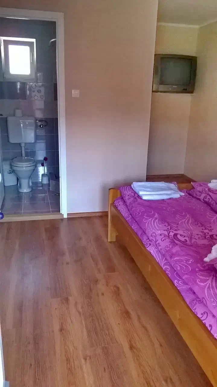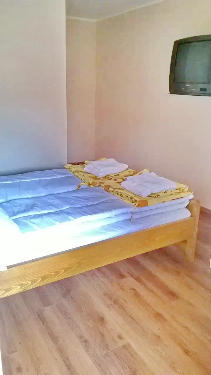 - 1 szoba: tágas szoba, benne 1 franciaágy, 2 egyszemélyes ágy saját fürdő