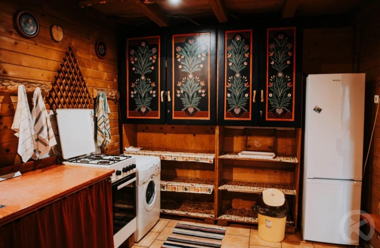 - Felszerelt konyha gáztűzhellyel, hűtőszekrénnyel, mikrohullámú sütővel és konyhai sütővel.