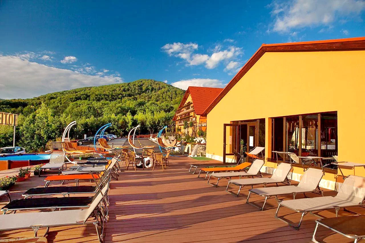 Szállás Szováta Hotel SPA*** | Erdőszélen magaslaton panorámával, étterem, terasz, bár, WIFI, medence, jakuzzi, szauna, konferencia terem, kert-udvar, pavilon, kemence, grill, parkoló | 3km Medve tó-Szováta, 11 km Parajdi Sóbánya, 19km Szováta sípálya