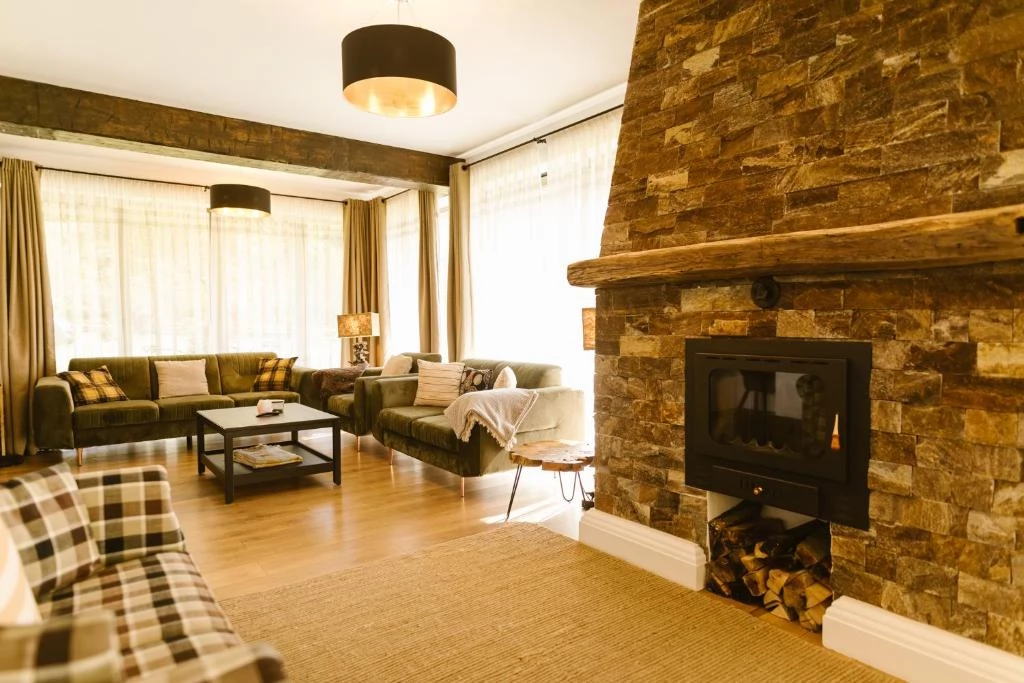 - A kétszintes faház a modern chalet stílus újragondolása: nyers gerendákkal díszített mennyezetekkel, a festői tájat tökéletesen keretező panorámás ablakokkal és kandallóval, amely meleg és meghitt hangulatot teremt a hidegebb hónapokban.