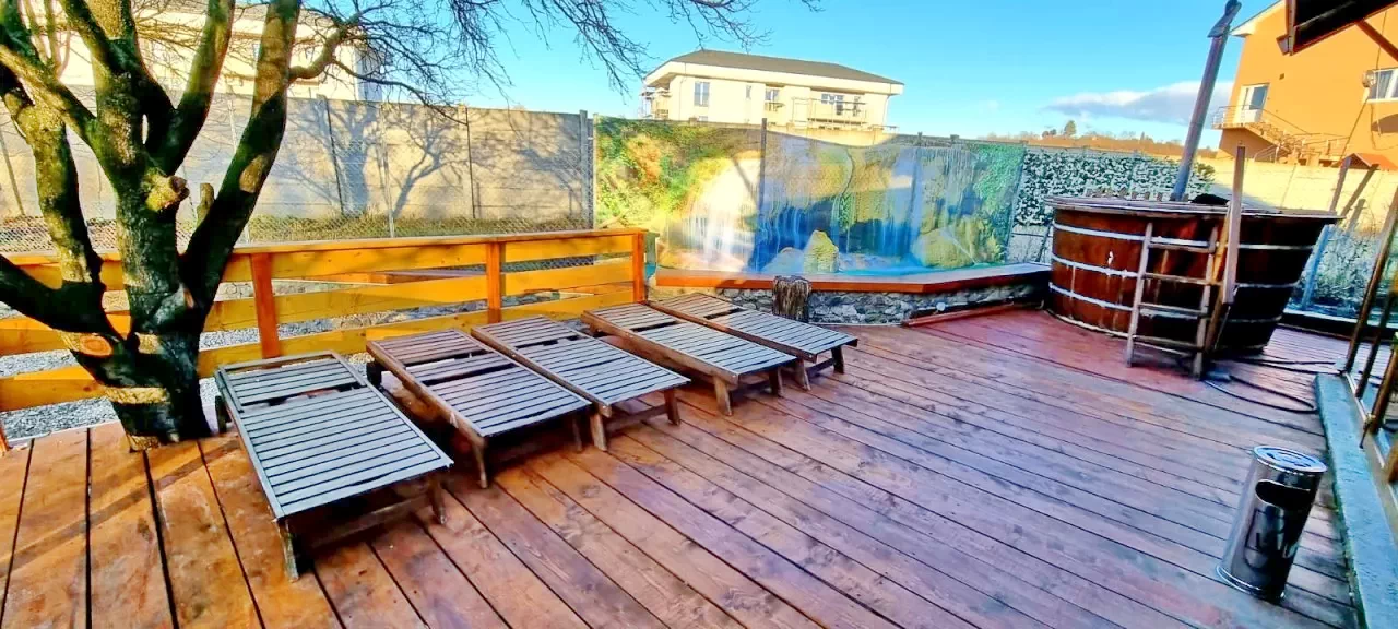- 6, 7, 8. szoba: 2 db ágy + 1 emeletes ágy (4 férőhely), saját fürdőszoba, terasz és kijárat a kertbe