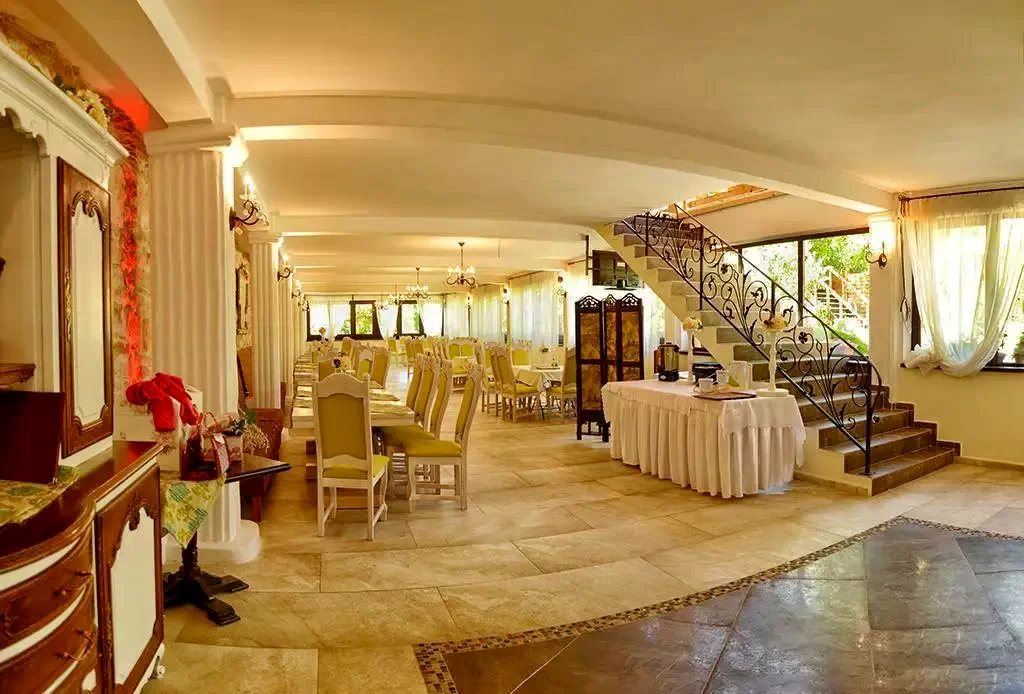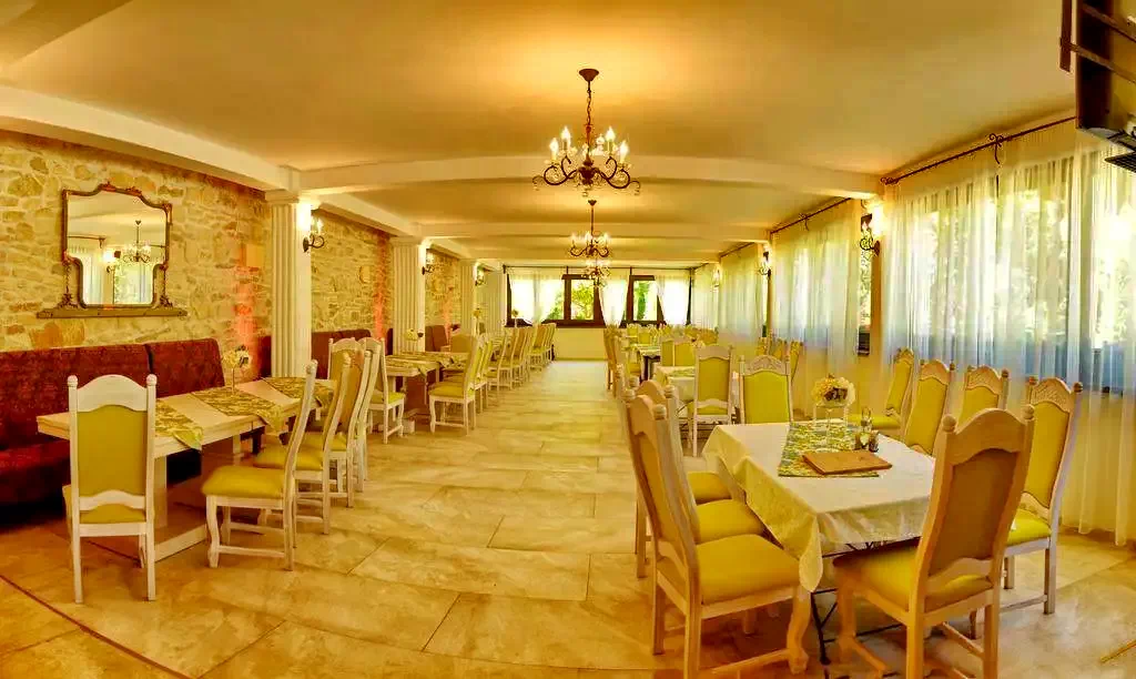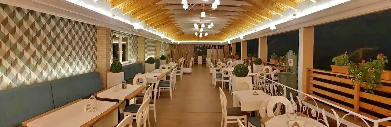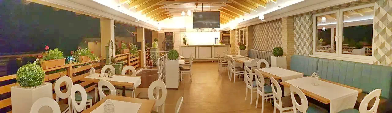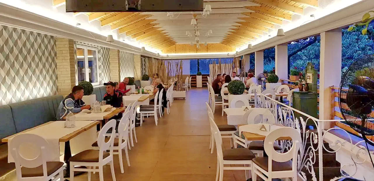 Éttermében és teraszán a la carte minden ízlésnek megfelelő fogások rendelhetőek.