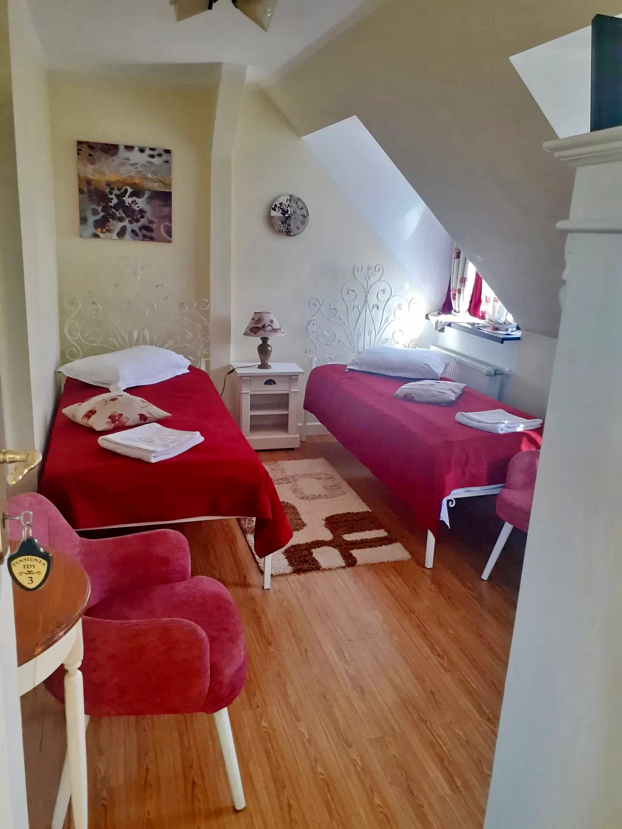 - 3. szoba: 2 db egyszemélyes ágy, fürdőszoba