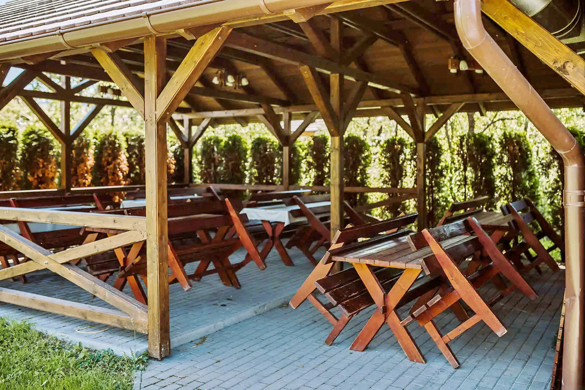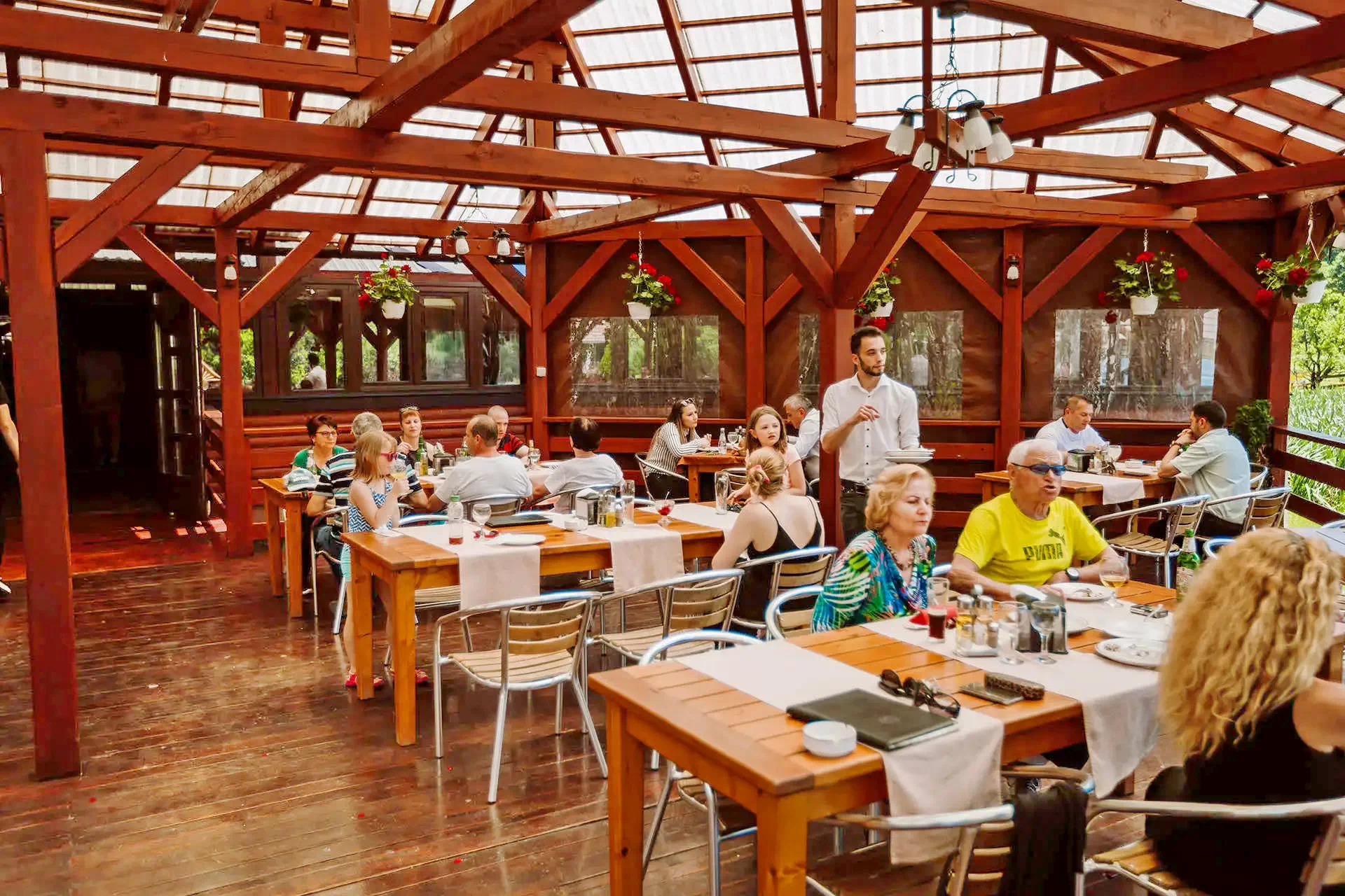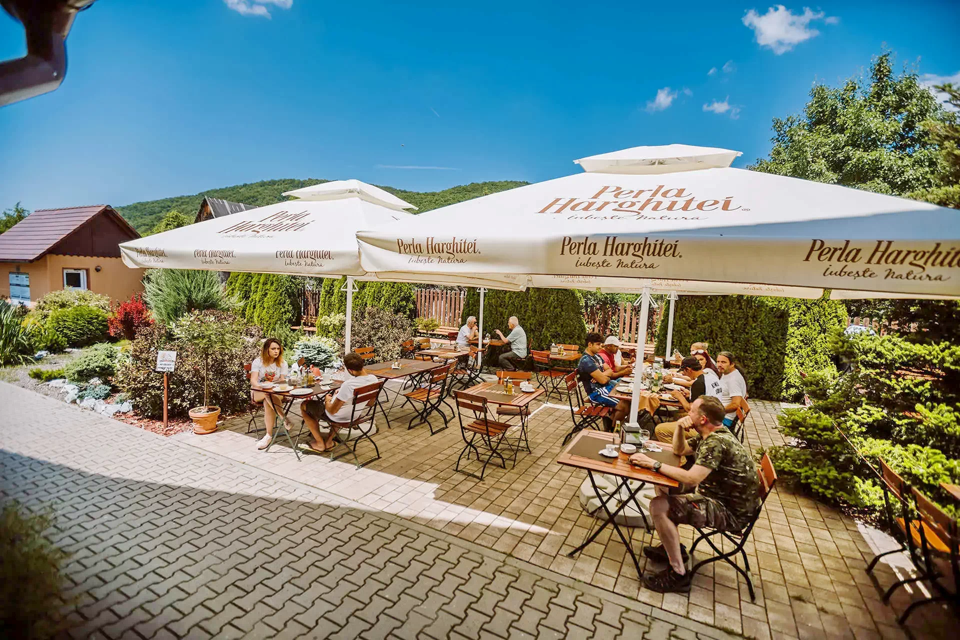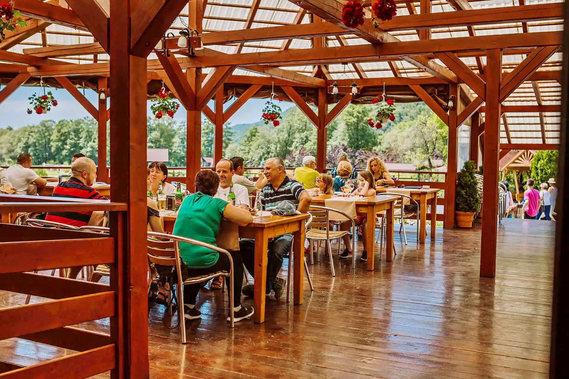 A panzió mellett non-stop "a la carte" étterem található. Terasza panorámás kilátást nyújt úgy a pisztrángos tavakra, mint a környező hegyekre.
