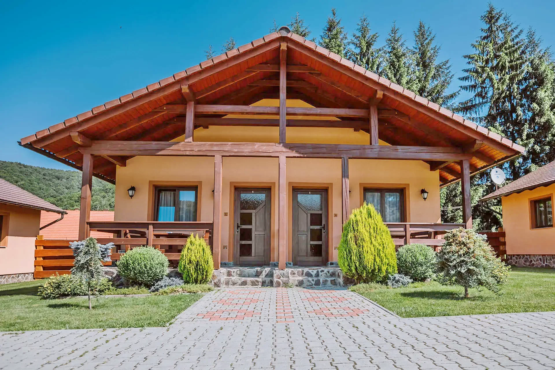 - 2 db. apartmanház, két-két db. kétszobás apartmannal (8 fő/4 szoba/apartmanház)