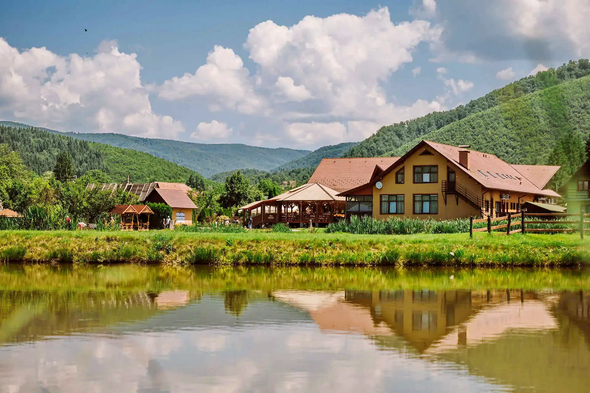 Szállás Vármező Panzió*** | Pisztrángos tavak mellett, szauna és dézsa lehetőség, étterem, bár, terasz, kert, sporthorgászat, játszótér, parkoló | 15 km Szováta Medve tó, 23 km Parajd Sóbánya, 16 km Szováta Sípálya